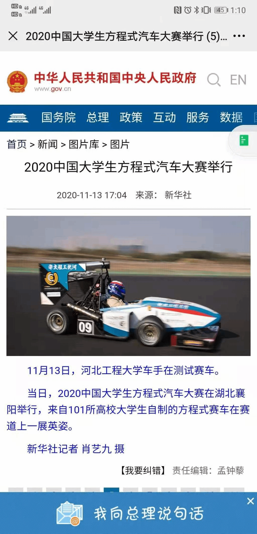 11月8日-15日,第十-届中国大学生方程式汽车大赛(FSCC)在湖北省襄阳市举行。经过几天的鏖战,我校“凌云车队”获高速避障项目第一名、直线加速项目第三名,总成绩全国二等奖。至此,近两次大赛,我校凌云车队已获得过所有动态赛的的前三名,创造了历史。 在高速避障项目中,“凌云车队”的9号赛车再次勇夺第一,连续两年获得油车组TOP10首发车位。车队实力和成绩得到了各方的认可。