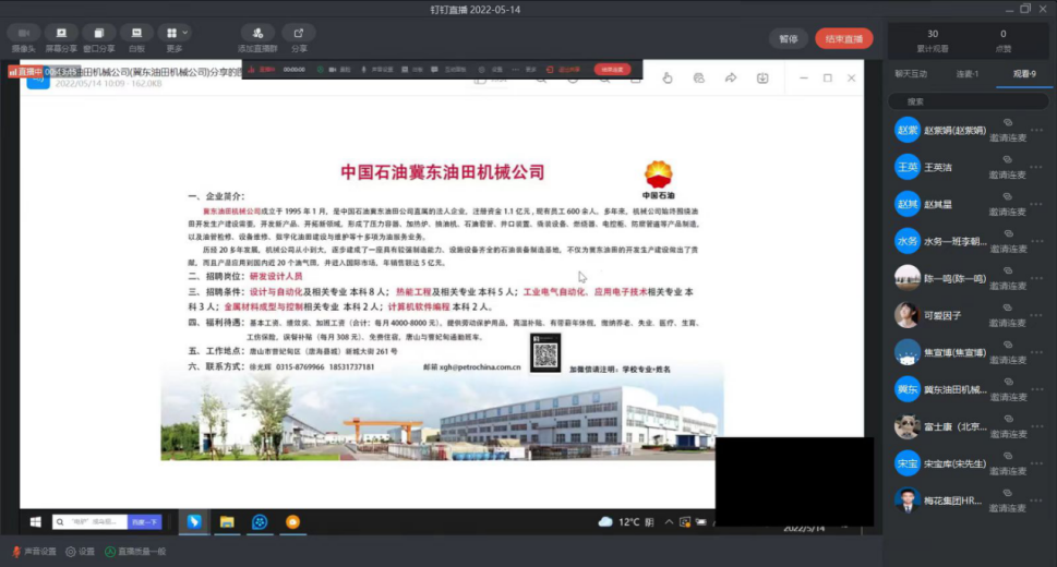 beat365官方网站于5月13日至5月23日联合北京海博思创科技股份有限公司、山东矿机集团股份有限公司、中国石油冀东油田机械公司、福耀集团天津公司、中天钢铁集团(南通)有限公司等公司以线上直播宣讲形式开展“访企拓岗促就业”专项活动。
