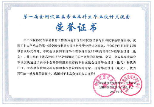 6月10日,由中国仪器仪表学会教育工作委员会举办的全国第一届仪器类毕业设计交流会经过各答辩组评选推荐,会议程序委员会审议表决通过了本次会议的优秀毕业设计和优秀PPT。本次毕设交流包括来自天津大学、南京大学、哈工大、吉大、南航等众多985高校的共计524篇论文,评选出52个优秀PPT,365官网测控系18级学生柴志铜、杨钰脱颖而出,荣获优秀PPT奖项。