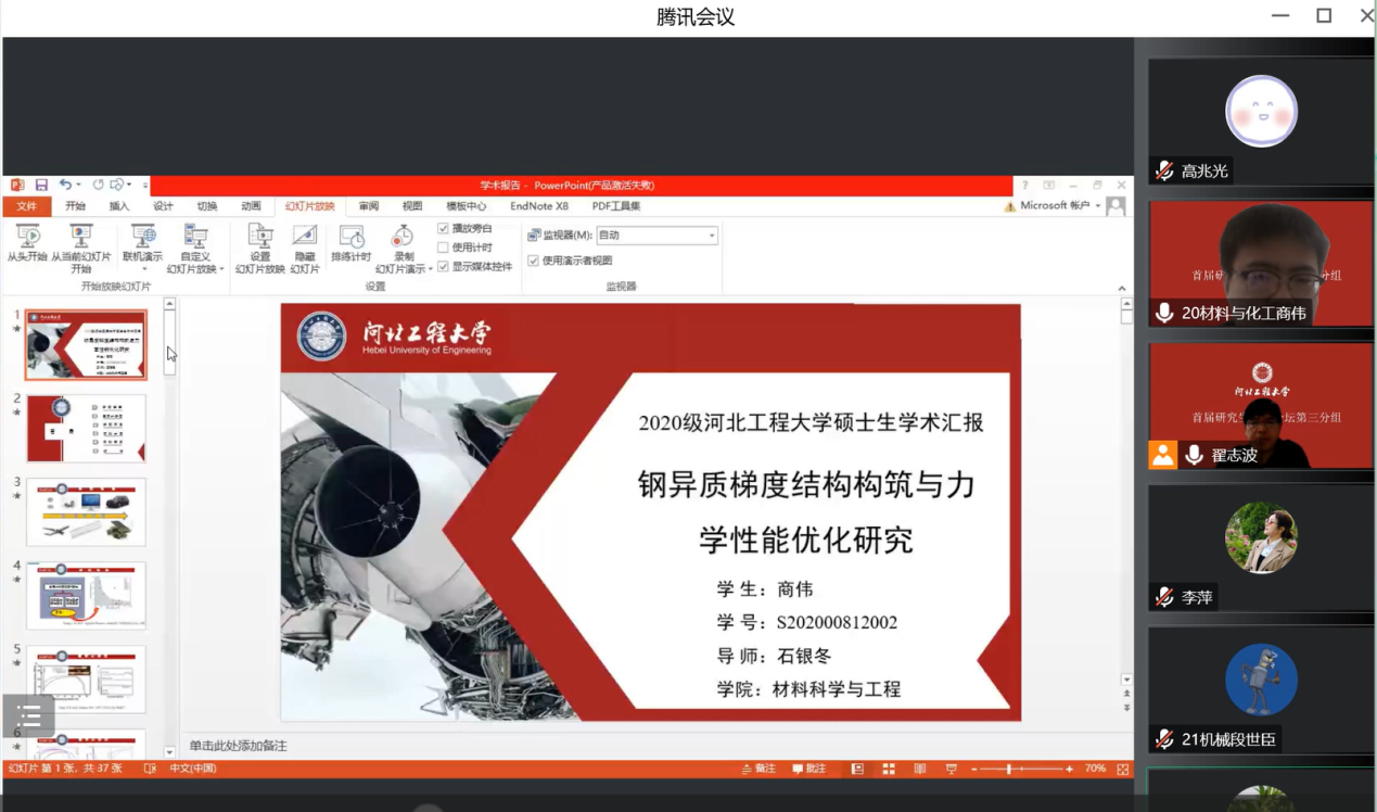 论坛首先分别由beat365官方网站副院长李河宗教授、材料学院副院长李萍教授致辞。其次翟志波老师为大家介绍了本次论坛的流程、主要内容和答辩规则。接下来,每位参会同学以PPT的形式进行自己的学术汇报,将自己的研究方法及成果从不同的角度进行阐述,评委老师对答辩同学予以了指导并提出了相关建议,参会同学就评委的提问进行了详细回答,并诚恳地接受了指导建议。最后,评审组组长郑立允教授对本次论坛做了总结,充分肯定了同学们的研究成果和积极表现,同时也指出了同学们的不足和努力的方向,希望所有研究生以更加严谨、负责的态度进行学术研究,切实写出一篇高质量论文。