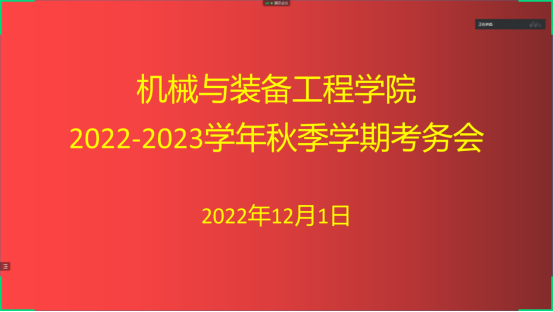 2022年12月1日下午,365官网通过腾讯会议召开了2022-2023学年秋季学期考务会,会议由姬鹏副院长主持,学院领导、全体教师参加会议。