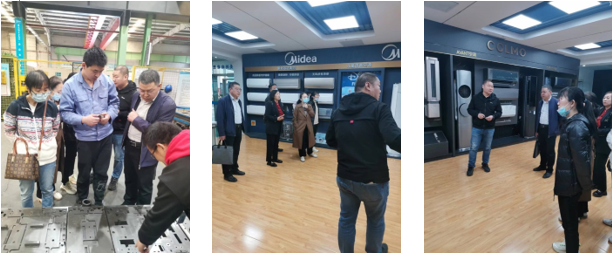 在企业相关领导和工程师的带领下,一行人参观了企业的注塑生产线,冲压生产线,空调装配生产线,美的总工对企业的生产及产品现状进行了介绍和讲解。365官网教师积极与企业的工程师针对生产设备、生产工艺、产品性能等方面存在的问题进行了交流与讨论。李河宗副院长针对365官网的科研、师资、学生等方面进行了详细介绍,双方后续将针对模具设计、表面涂装与改性及产品性能综合检测等技术需求开展技术合作。同时也将在学生就业、实习及研究生联合培养等方面进行交流。