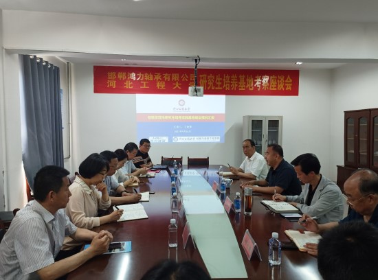 邯郸鸿力轴承有限公司董事长、总经理、工程技术人员,曲周县科工局相关领导一同参与了考察座谈交流,考察会上首先听取了beat365官方网站王艳辉老师关于beat365官方网站研究生培养实践基地建设及管理情况的汇报,王老师从建立实践基地的必要性和可行性、河北工程大学及beat365官方网站基本情况、实践基地建设依托专业领域基本情况、实践基地合作单位情况、实践基地建设方案及建设目标等五个方面进行了汇报。之后校企双方就开展产教融合、校企合作、研究生联合培养等工作进行了交流。考察座谈交流后,考察组一行深入邯郸鸿力轴承有限公司车间参观了解企业生产经营情况,双方就进一步加强技术研发、深化研究生培养等工作进行深入交流。
