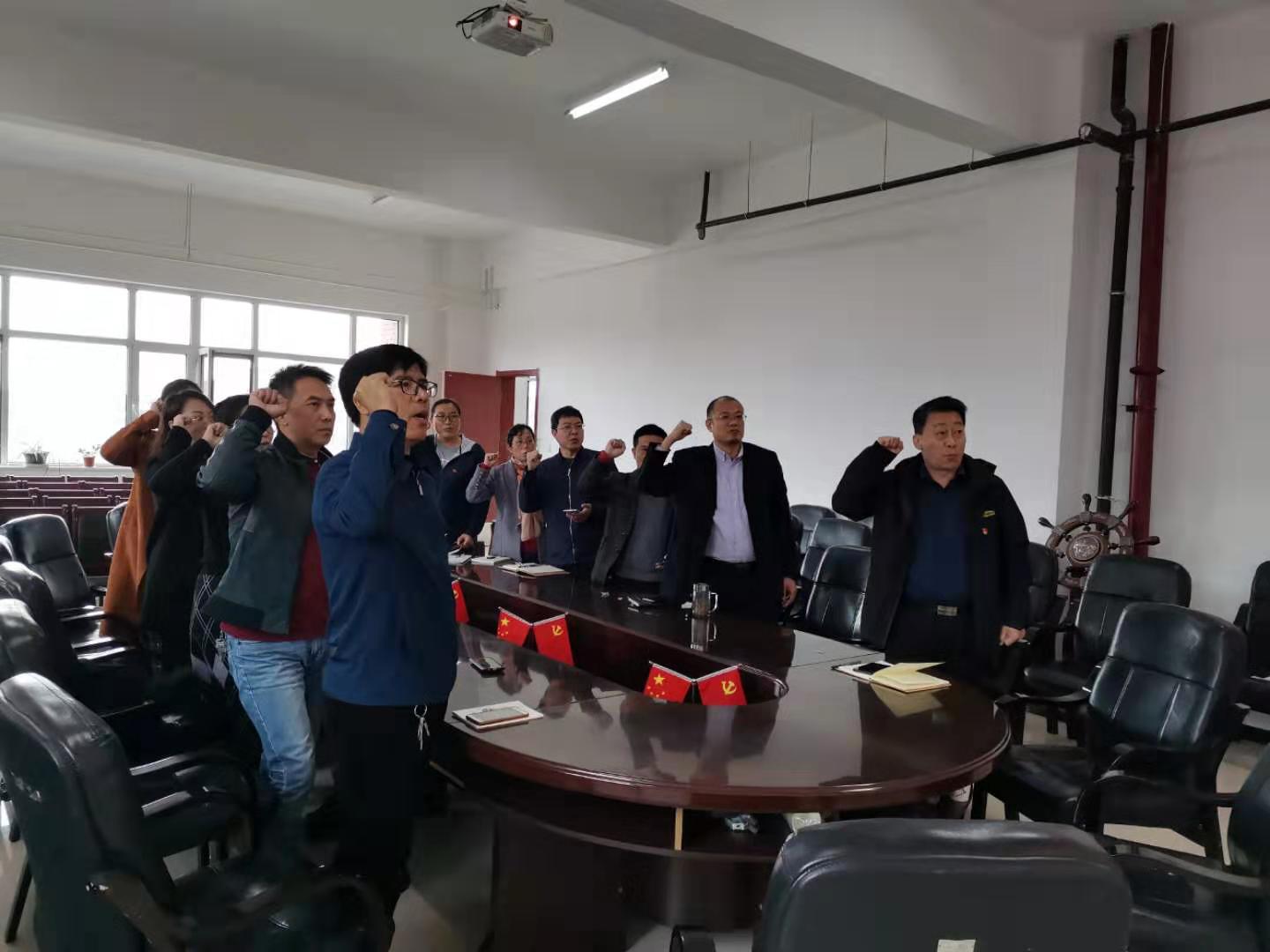 10月15日上午,beat365官方网站机关党支部在机械楼403会议室举办了“我和我的祖国”主题党日活动,庆祝中华人民共和国成立70周年。全体党员手持“五星红旗”,佩戴党员徽章,共赞祖国,共唱国歌,重温入党誓词,并集体观看了«开国大典»经典影片,共同追忆伟大的历史时刻。